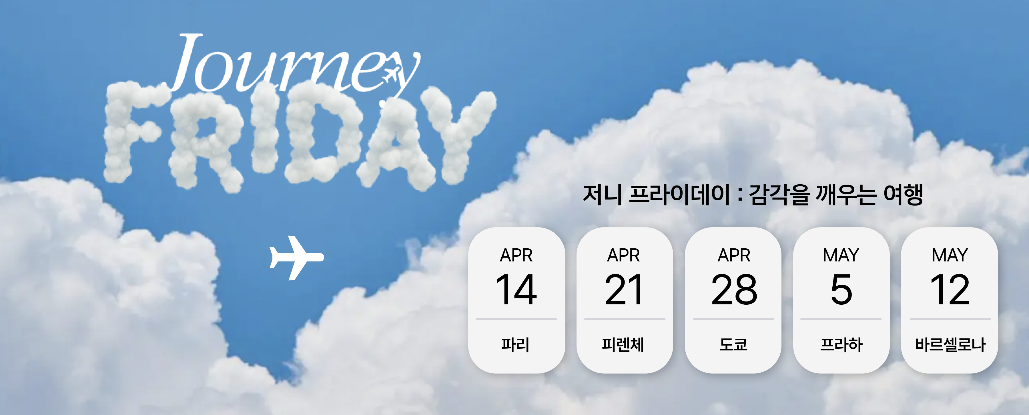 ์ฌํํ๊ณ ์ถ์ ๋ง์์ด ์นํธ๋ 4์, ๋งค์ฃผ ๊ธ์์ผ <์ ๋ ํ๋ผ์ด๋ฐ์ดJourney Friday> ์๋ฆฌ์ฆ๊ฐ ์ฐพ์๊ฐ๋๋ค. ๊ฐ๋๊ฐ ๋จ๋ค๋ฅธ ํฌ์ด๋ฅผ ๋ง๋๋ ‘๊ฐ์ด๋ ๋ผ์ด๋ธ’์ ์ฌํ ๊ธฐํ์์ ํจ๊ป ๋์ ์ฌํ์ ๋ ๋๋ณด์ธ์.