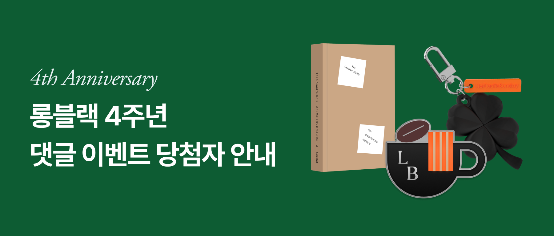 *롱블랙 태그미 문장 키링 / 롱블랙 4주년 책 / 롱블랙 4주년 뱃지 중 당첨 품목을 확인해주세요!