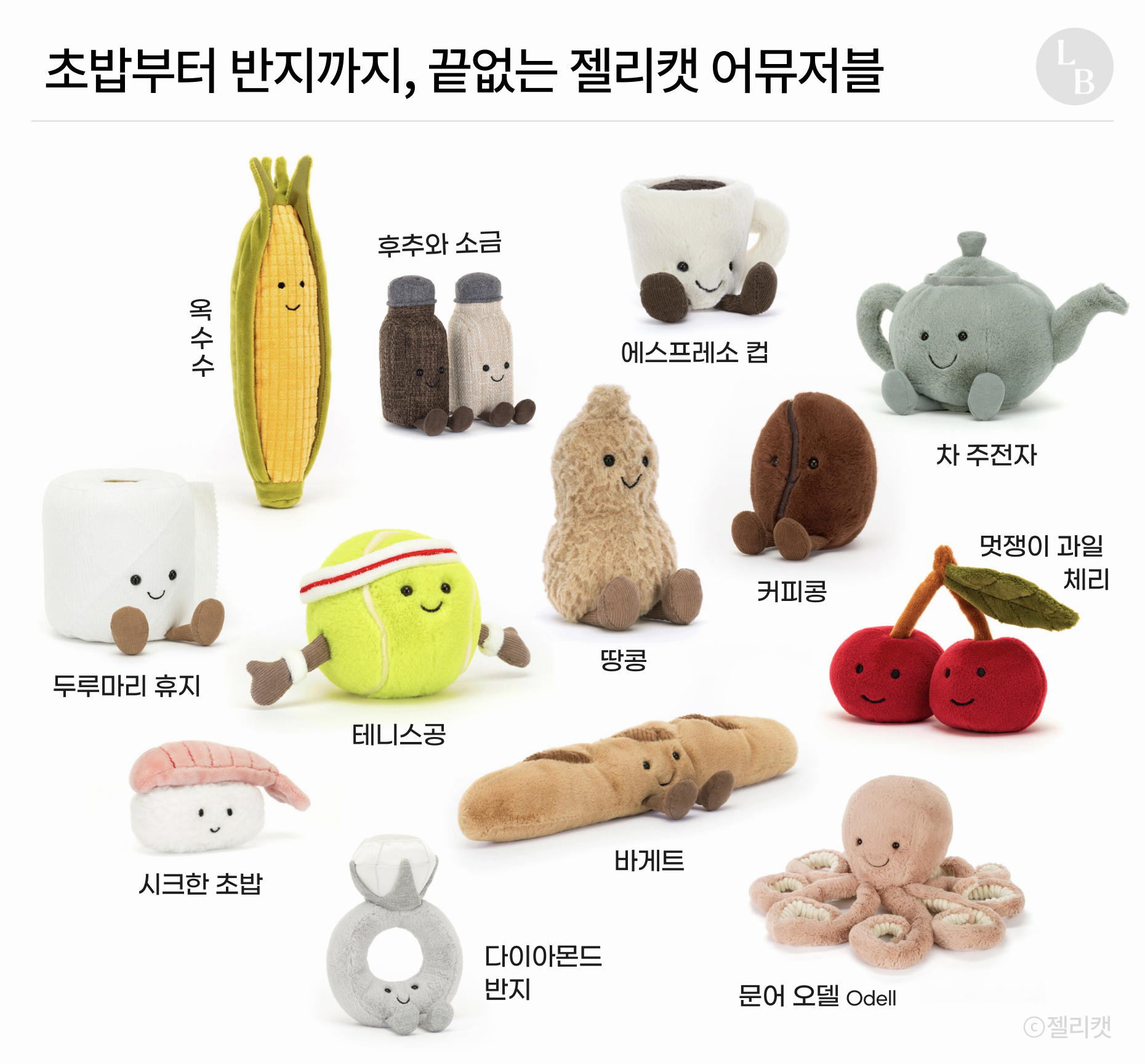 ‘젤리캣Jellycat’. 1999년에 나온 영국 봉제 인형 브랜드예요. 보드라운 털을 가진 토끼로 유명하죠.
