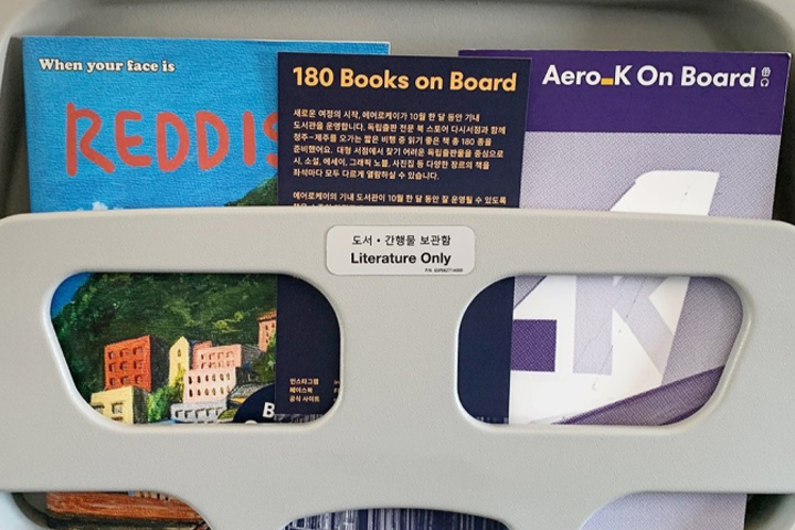 승객의 시선이 닿을 만한 곳에 ‘새로움’을 넣자. 브랜드전략팀은 ‘기내 서점’을 오픈해요. 좌석마다 비치된 선반에 주목했죠. 승객이 심심할 때 면세 책자나 안전 카드를 꺼내 보는 습관을 떠올렸어요.