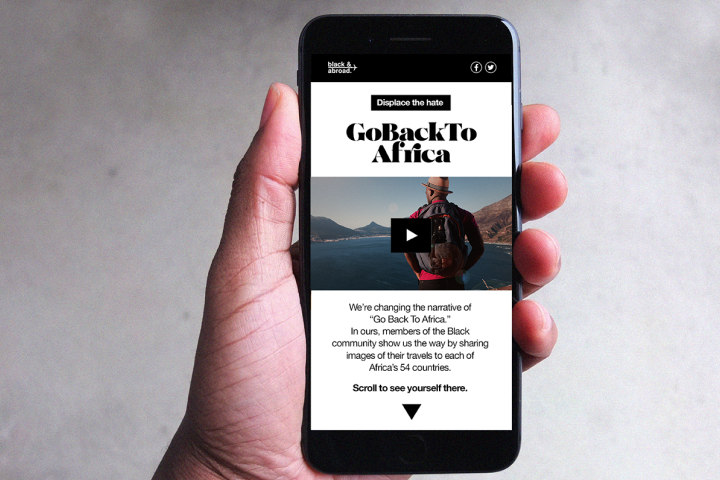 블랙앤어브로드는 이 문구를 더 많이 쓰라고 독려하기까지 했어요. 흑인 여행자들에게 휴가 사진을 SNS에 게시할 때 #GoBackToAfrica를 추가하라고 했죠. 그리곤 이 태그를 달아준 사진을 모아서, 홈페이지에 전시했어요.