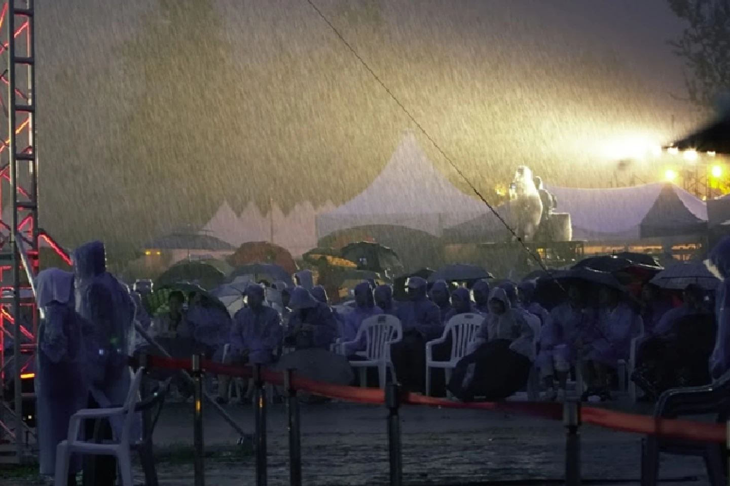 여전히 비가 내렸지만 분위기는 전날과 달랐습니다. 특히 피아니스트 디디 잭슨D.D. Jackson의 열정적인 연주가 분위기를 달궜어요. 거세지는 빗줄기만큼이나 힘차게 건반을 쳐댔죠. 관객들은 다시 환호해 줬어요. 관객과 스태프가 하나 돼, 기차 행렬을 만들어 뛰어놀기 시작했습니다. 무대 위 아티스트도, 인 감독도 그들 속에 섞여 들어가 춤추듯 뛰었어요.