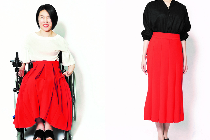 협업을 위해, 사와다는 장애 당사자 여섯 명에게 옷에 대한 절실한 바람을 물었습니다. 예를 들어, 세키네 씨는 열두 살부터 휠체어 생활을 하고 있는데요. 입고 벗기 불편하고, 휠체어 바퀴에 낀다는 이유로 스커트를 입지 못했습니다. 그래도 언젠가는 입고 싶다는 바람이 있었죠.
