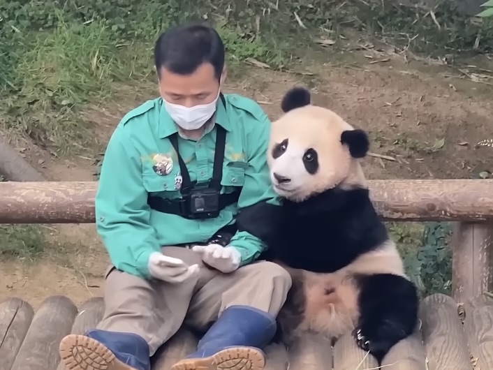 “푸바오가 사육사 할아버지에게 팔짱을 끼고 있는 사진 한 장. 이걸 본 사람들은 푸바오의 귀여움에 빠져들었어요. 물론 푸바오가 당시 어떤 생각을 했는지는 아무도 모를 거예요.
