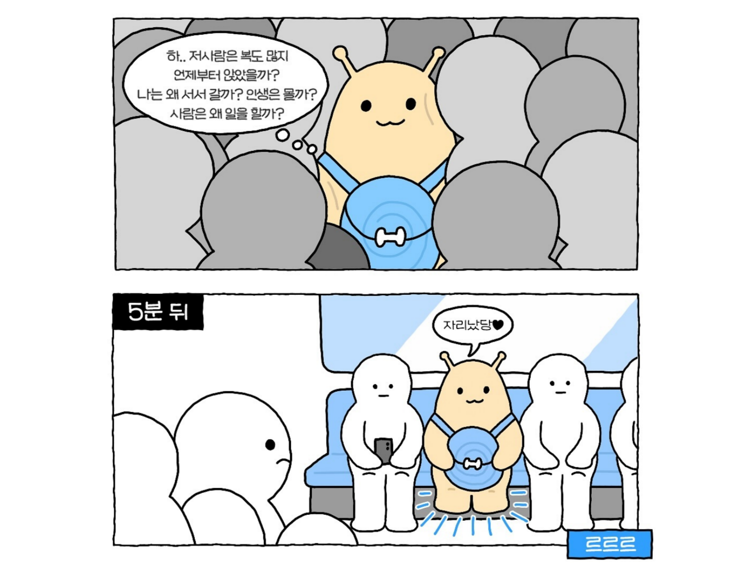 이들이 보여주는 모습, 지극히 평범해요. 풀밭에서 맛있는 음식을 나눠 먹는 소소한 일상이 만화를 채우죠. 그런데 사람들은 여기서 위로를 얻어요. 이유가 뭘까요?