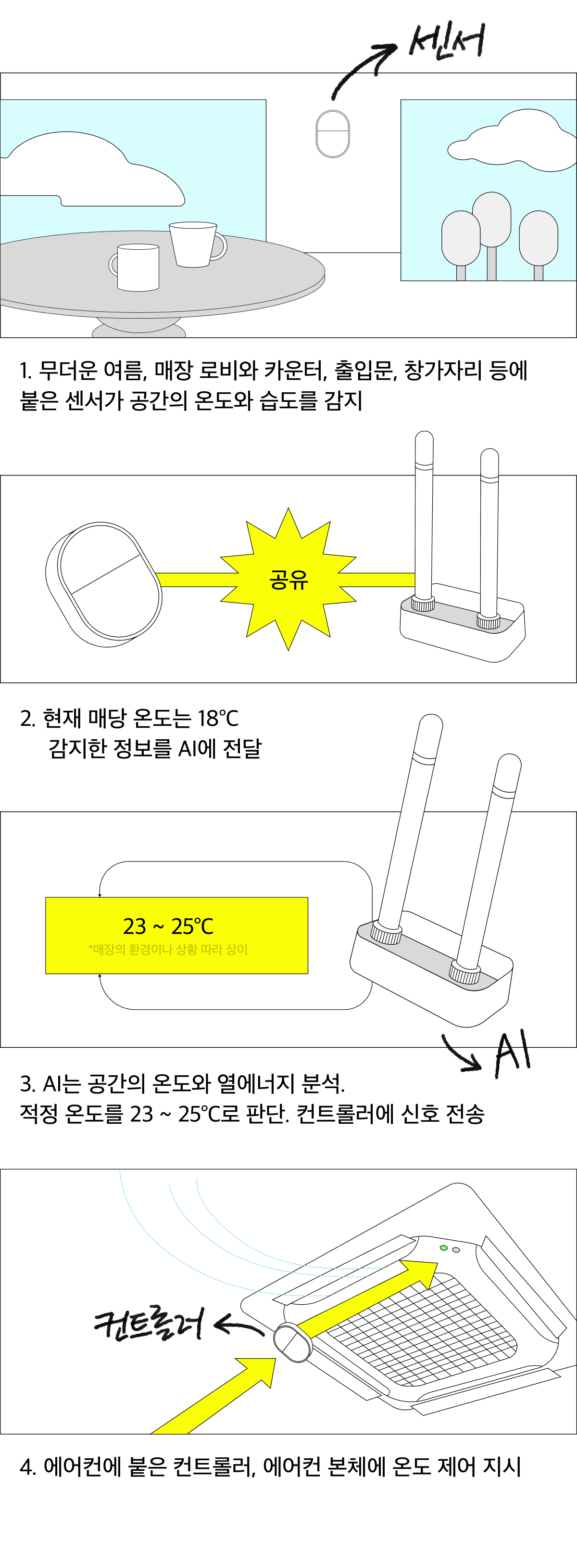 이 모든 과정은 단 30초면 끝나. 사람보다 섬세하지. 우린 추우면 온도를 30도까지 높이고, 더우면 18도까지 내리잖아. 그럼 자연히 전기를 낭비하게 돼. 이런 잘못된 판단을 작은 기계가 초 단위로 막아주는 거야.