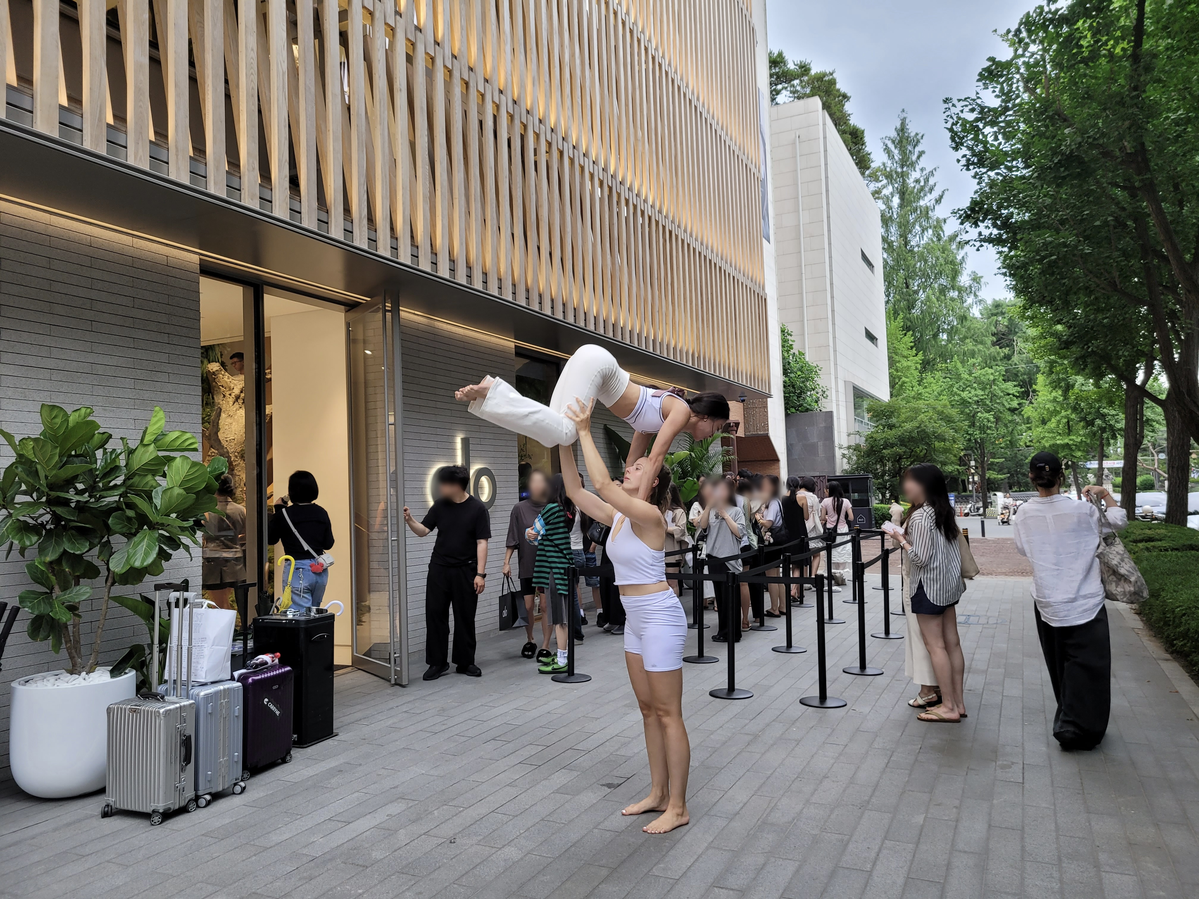지난 금요일* 서울 압구정 도산공원, 에르메스 매장 옆 3층 높이 건물 앞에 대기 줄이 길게 늘어섰어요. ‘알로요가Alo Yoga’의 한국 1호점이 처음 여는 날이었거든요. 저도 1시간 30분을 기다린 뒤에야 겨우 들어갔어요!