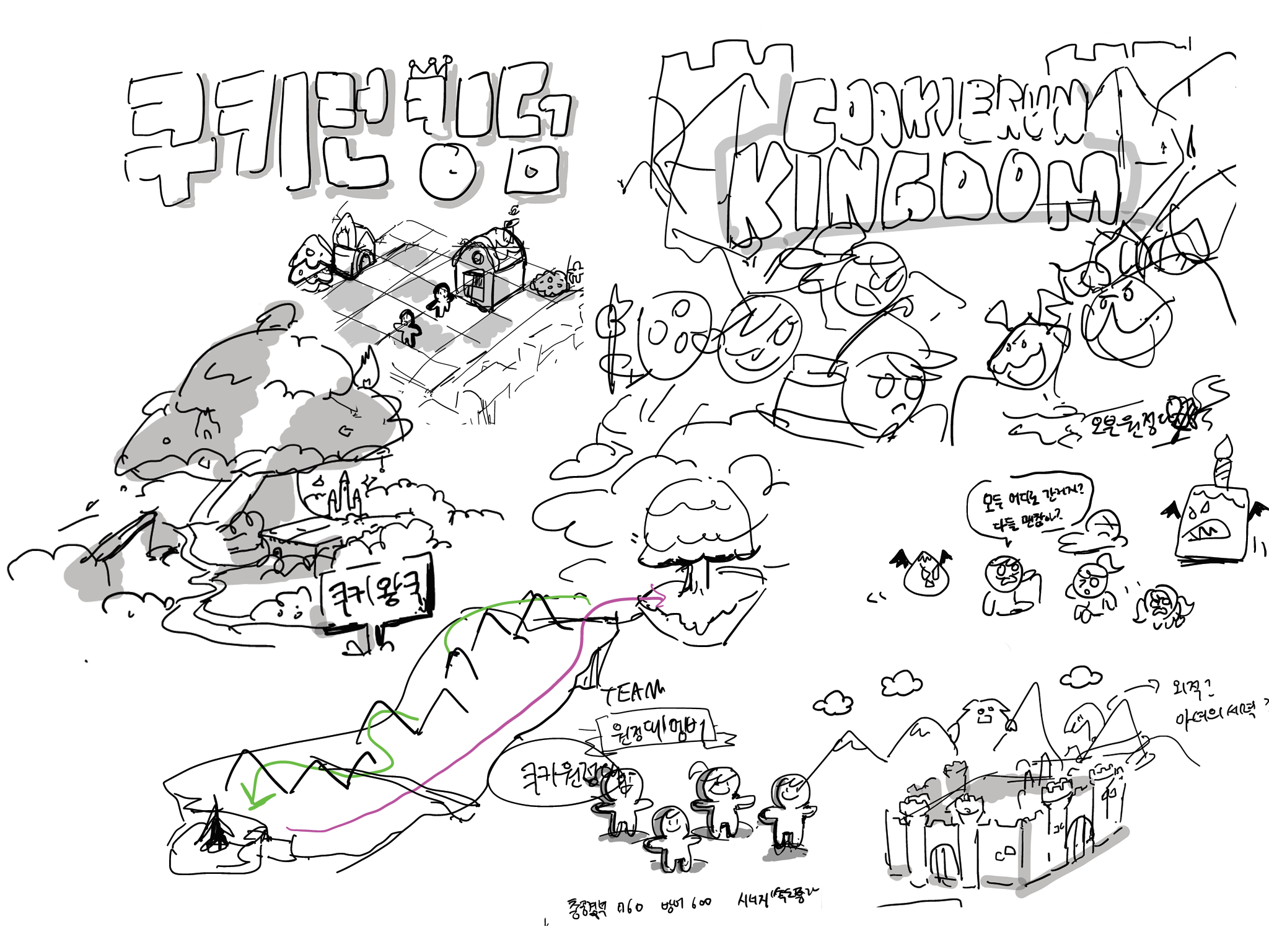 세계관 작업의 계기가 있대요. 왕국의 쿠키성을 그리던 한 아티스트가 외쳤대요. “성을 못 그리겠어요!”