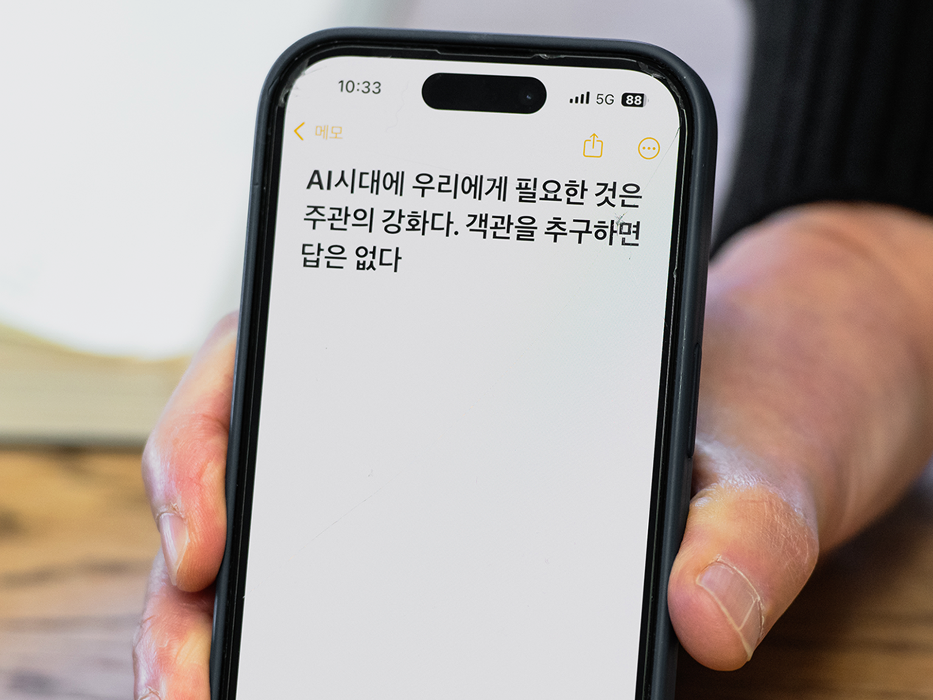 그는 이 말을 한 뒤 생각이 하나 떠오른 듯, 스마트폰에 쓴 메모를 제게 보였습니다. 이런 문장이 적혀 있었어요.