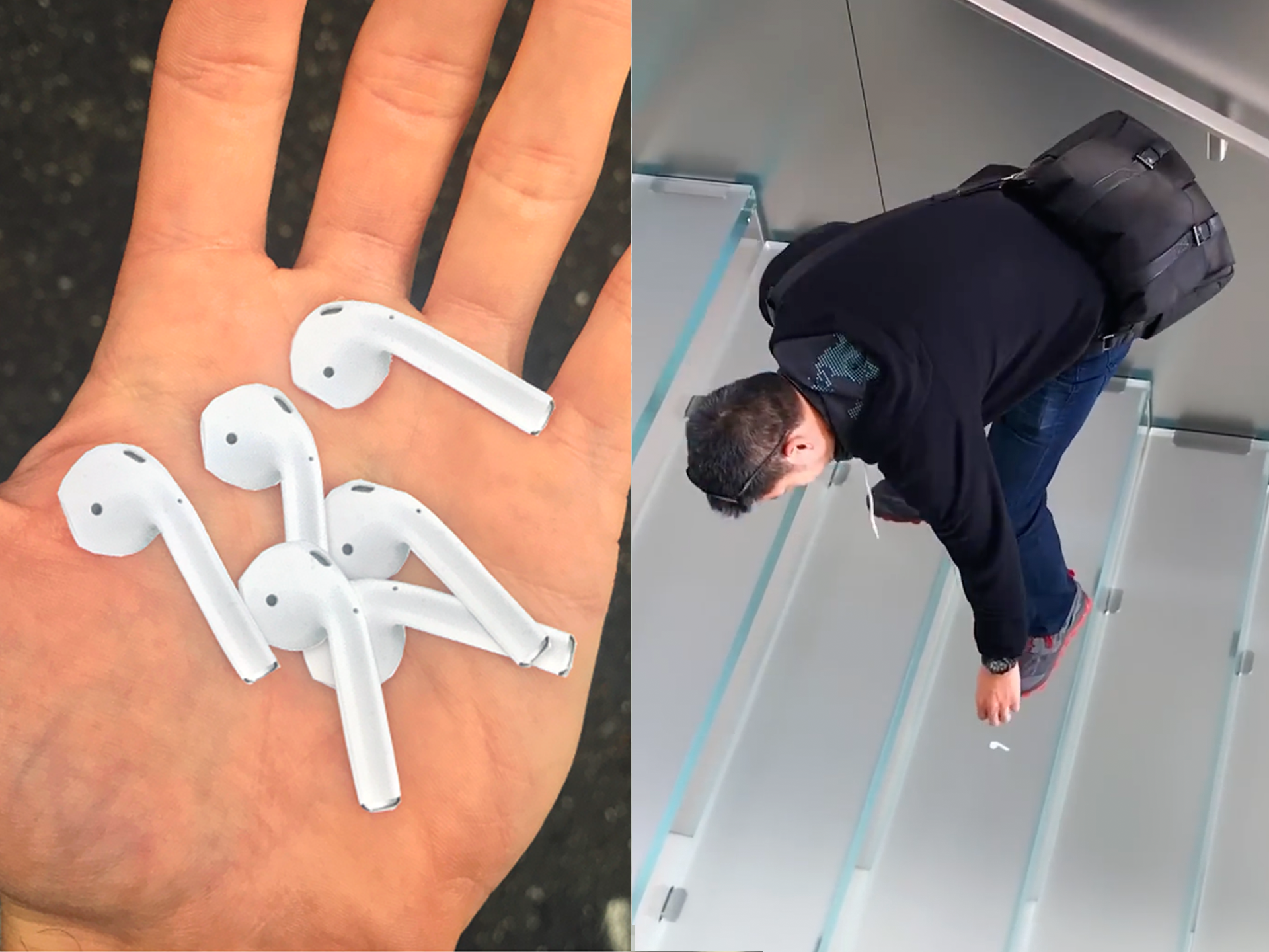 계단에 에어팟 한쪽이 떨어져 있어요. 지나던 사람들이 손을 뻗어 집어보는데, 아뿔싸! 자세히 보니 스티커예요. 스티커 장난에 사람들이 허탈해하는 이 영상, 조회수가 무려 3304만 회예요.
