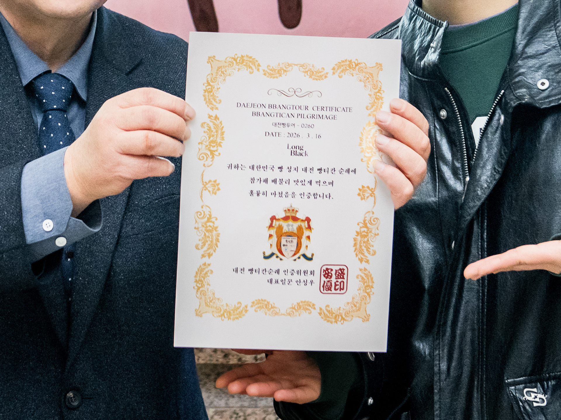 안 기사는 빵 투어를 마무리하는 순간에도 자신이 해줄 수 있는 것을 찾아 손님에게 제안했어요. 투어를 마치고 대전시청에 도착한 그, 제게 “줄 게 있다”며 빳빳한 종이를 꺼냈어요. 상장처럼 생긴 인증서였죠. 이런 문구도 인쇄돼 있었어요.