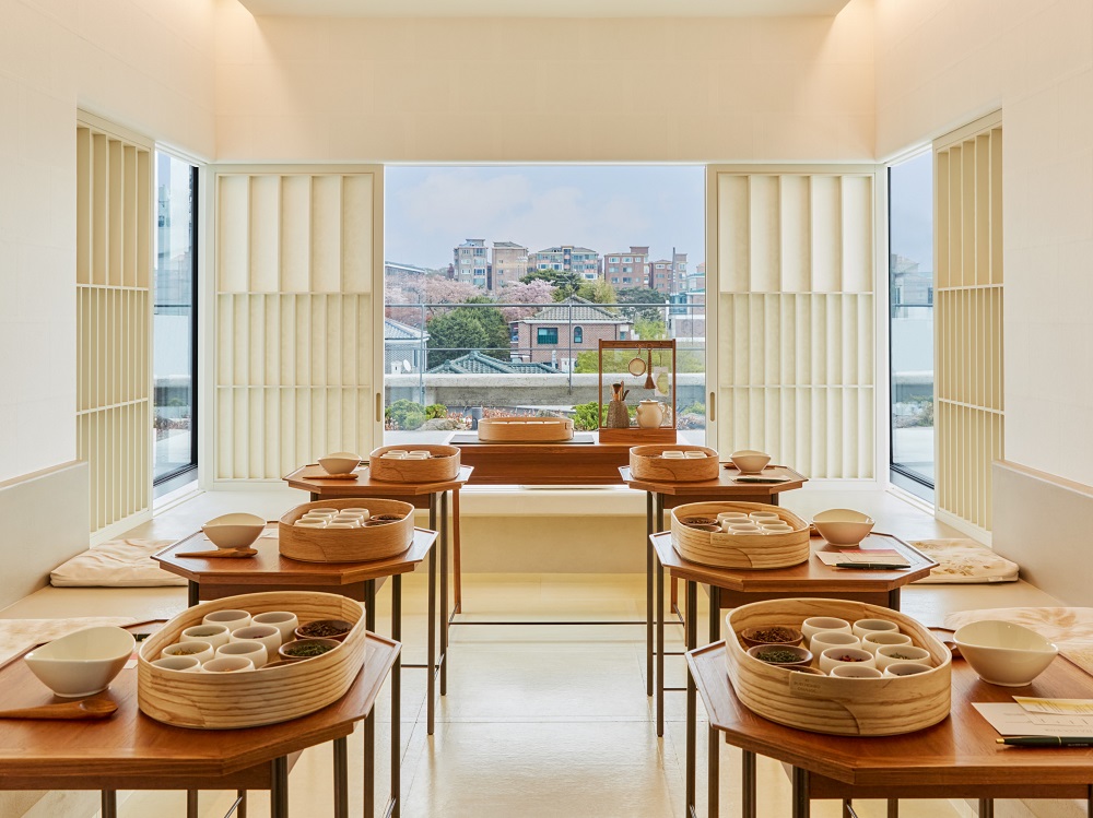 “차 문화의 본연이 뭘까 고민했어요. 공간을 고치면서 가장 핵심만 남기려 했죠. 따뜻하면서도 구수한 차의 향이 올라오고, 그걸 편안히 마시며 푸른 풍경을 보는 것. 우리 브랜드에서만 즐길 수 있는 차와 차경借景*을 만들었습니다.”