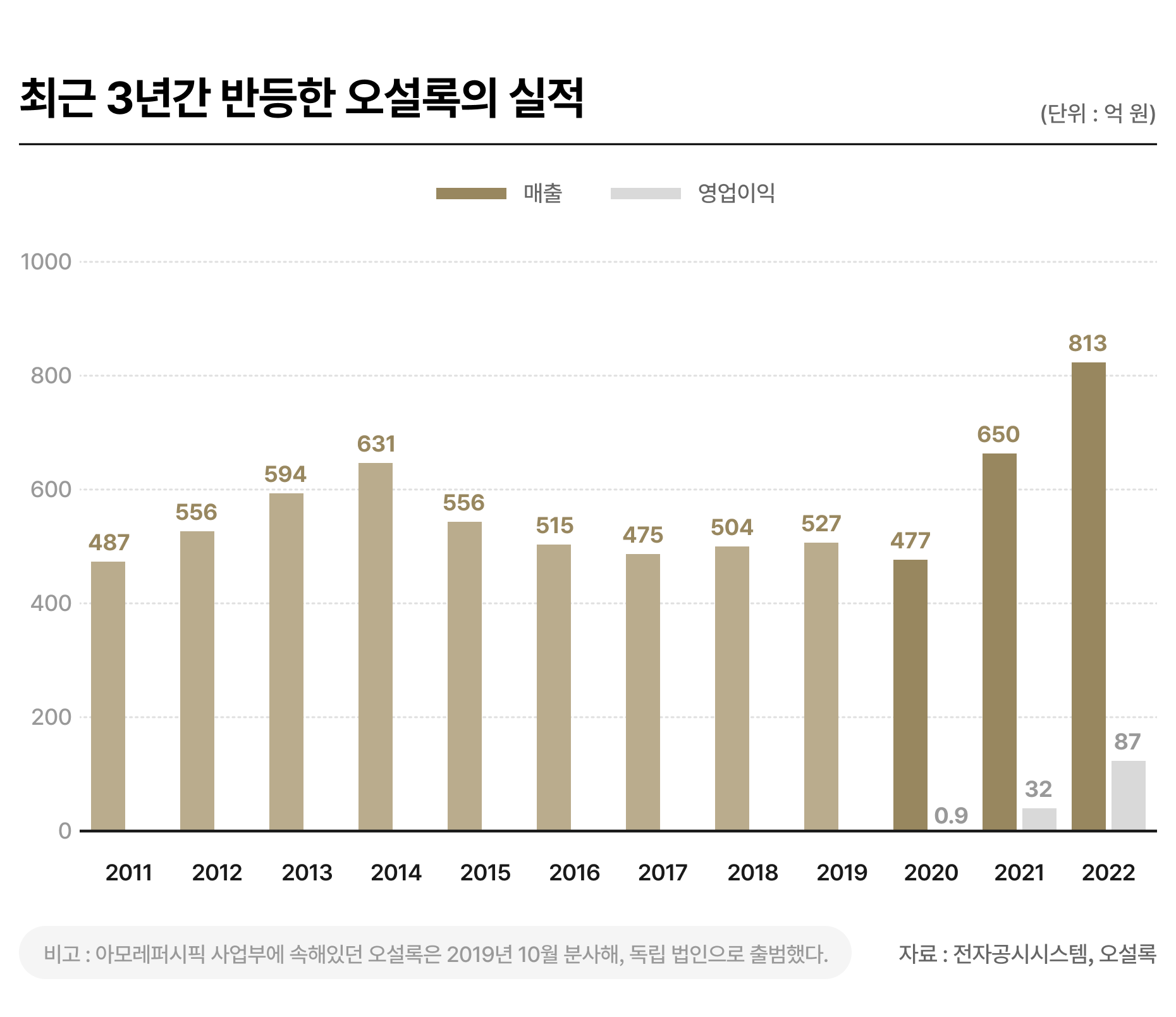 오설록은 최근 작은 기록을 세웠습니다. 2022년 매출 813억원, 영업이익 87억원(영업이익률 10.7%). 모두 역대 최고치입니다. 최근 3년 사이, 연평균 31%의 매출 성장률을 기록했죠.