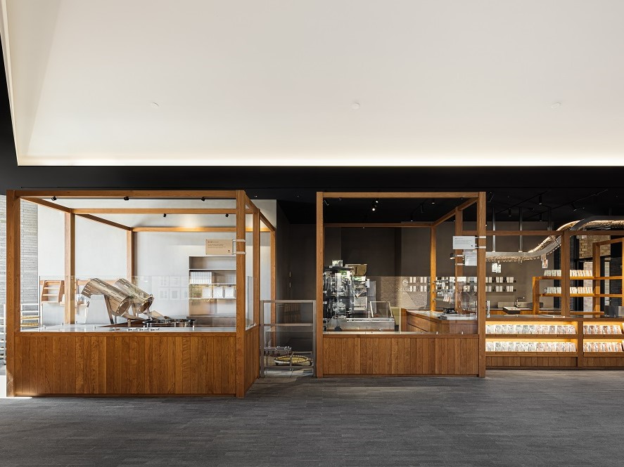 작은 코너였던 로스터리 존은 리뉴얼을 하며 핵심 경험으로 확대했습니다. 갓 덖은 산지 차가 따뜻하게 우러나는 과정을 한눈에 볼 수 있게 했어요. 먼저 덖음솥을 가운데에 두고, 포장된 제품이 레일을 타고 카운터로 넘어와요. 이어 즉석에서 우린 차를 맛보고 사는 방식입니다.