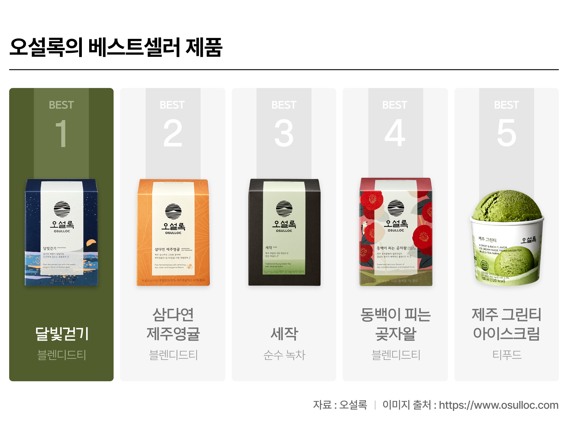 *아모레퍼시픽은 녹차사업부 산하 설록차 브랜드를 2015년 오설록으로 통일하고, 2019년 사업부를 분사시키며 법인명을 오설록으로 정한다.