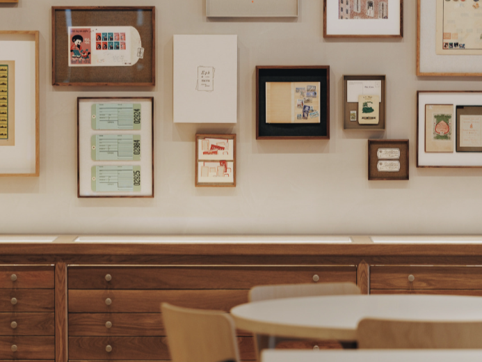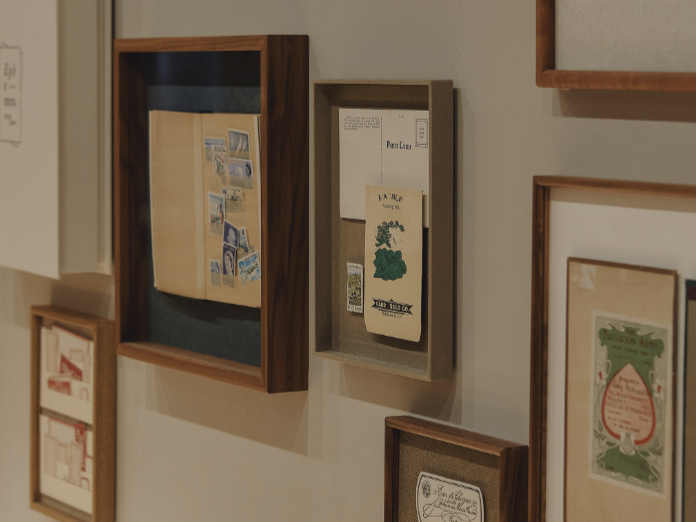 이페메라를 어떻게 잘 보여줄 것인가에 집중했습니다. 이제는 효용 가치가 떨어진, 유행과 거리가 먼 사물들. 이들을 주인공으로 만들어야 했어요. 임 소장과 팀원들은 액자 하나하나를 디자인했어요. 300여개가 넘는 나무 액자는, 수종과 프레임의 두께, 배경 색지가 전부 달라요. 또 어떤 액자는 단단하게 붙어있고, 어떤 건 붕 떠서 걸려있어요.