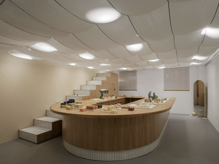 “조명은 일렁이는 한강에 햇빛이 반사될 때 보이는 윤슬을 표현했어요. 한남동의 매력은, 원하면 언제든 한강을 찾을 수 있는 생활 환경이라 생각했거든요. 동네 주민이 자주 봤을 한강의 모습을 매장에도 그대로 녹였죠.”