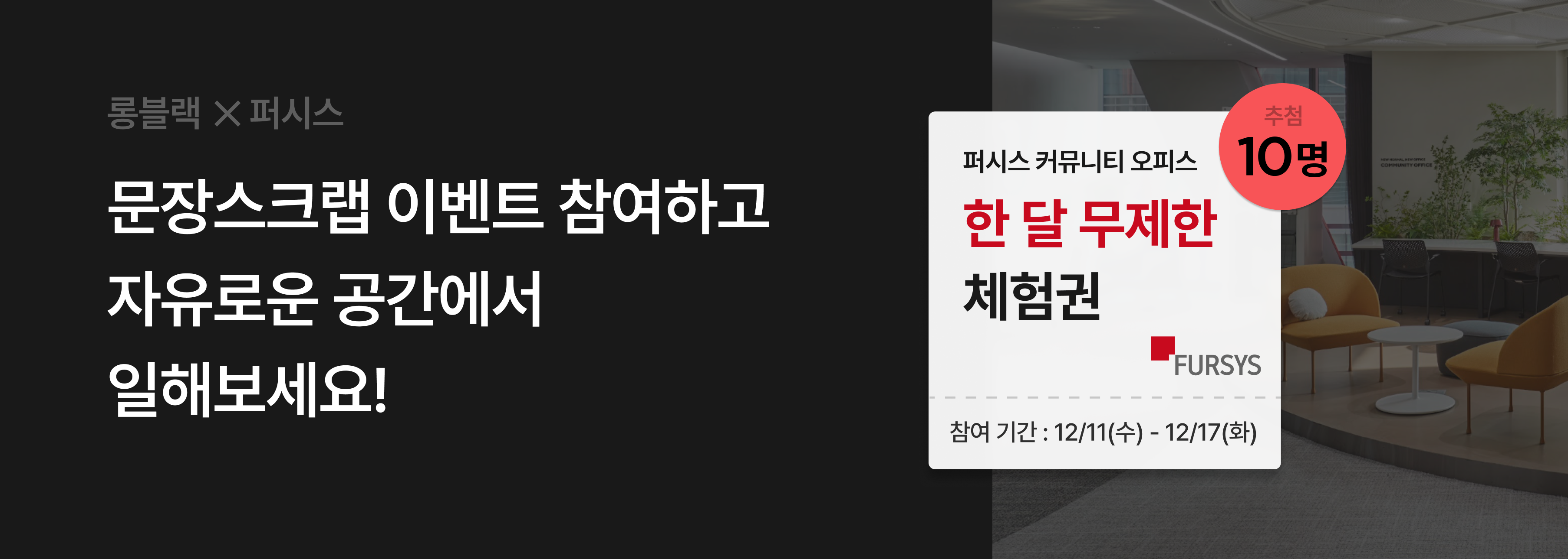 문장스크랩하고 인스타그램에 공유하면, 퍼시스 커뮤니티 오피스 ‘한 달 무제한 체험권’을 드려요!